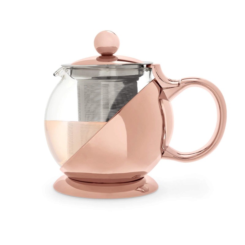 METALLIC ROSE GOLD DETAILS - The clear glass body of this cute teapot shows off your loose leaf tea, while the diagonal stainless steel wrap, lid, and handle have a striking rose gold finish. Say bye to basic teaware and enjoy a teapot that stands out!