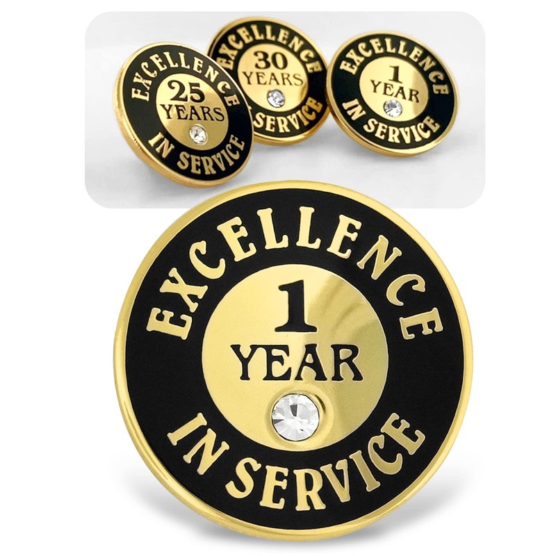 - YEARS OF EXCELLENCE: Mark every year of outstanding service from long standing employees with this jewelry quality metal Excellence in Service workplace reward pin