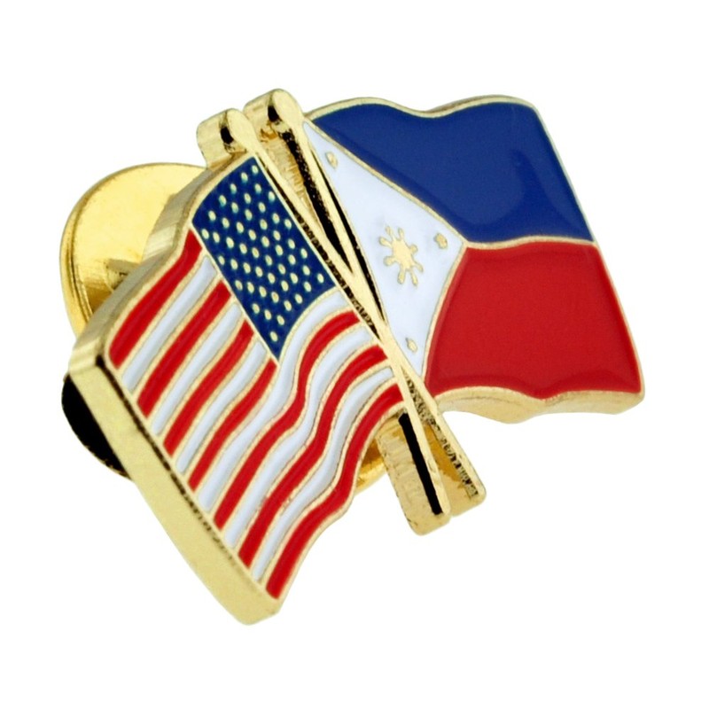 - This USA and Philippines Crossed Flag Lapel Pin features the American flag and the Philippines flag crossed, it is die struck with gold plating and enamel color fills. Each Philippines pin comes with a clutch back, perfect for making sure your lapel pin stays safe and secured
