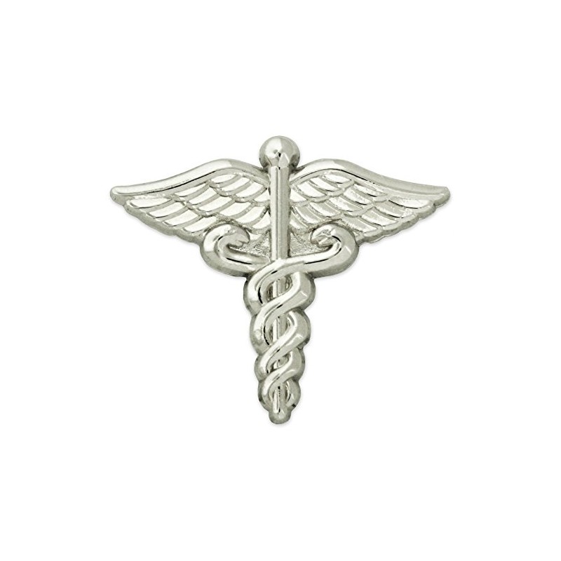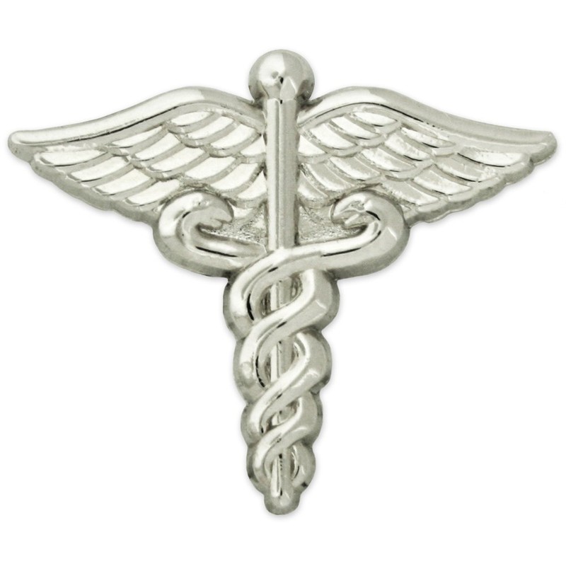 - This very classic Caduceus Pin is widely used by medical professionals, including medical practitioners, nursing professionals and military medics. The Caduceus has become the unofficial symbol of doctors and medical associations. This lapel pin is die struck from premium jeweler's metal, is plated in silver and is polished to a beautiful finish.