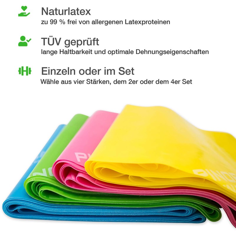 For a long time, trainers, sports doctors and physiotherapists have been using this simple but effective training method. The Pinofit exercise bands stand out
