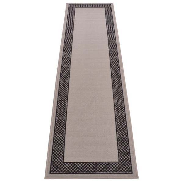 Pinoletti Border Design Printed Slip Resistant Rubber Back Latex Runner Rug and Area Rugs (Grey Black, 1'11" x 7')