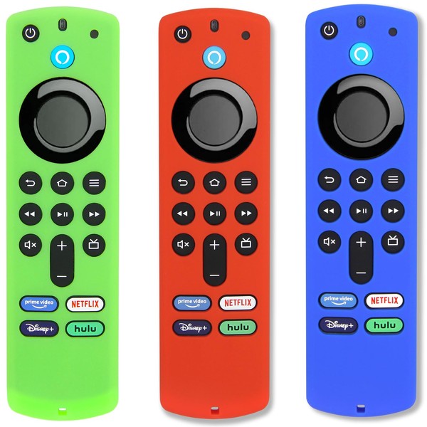 Pinowu Firestick Remote Covers (3pcs) Compatible with Alexa Voice Remote (3rd Gen) with Fire TV Stick 4K, Silicone Cases with Lanyard (Glow Green & Blue & Red)