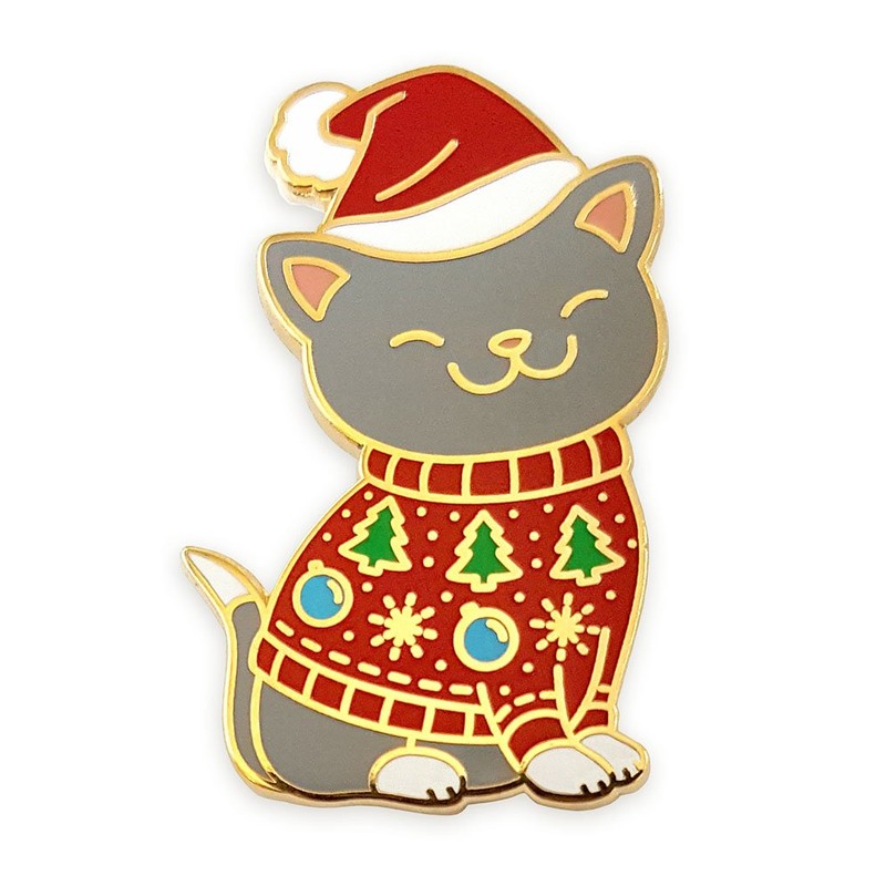 Pinsanity Cute Christmas Kitty Cat In Holiday Sweater Enamel Lapel Pin