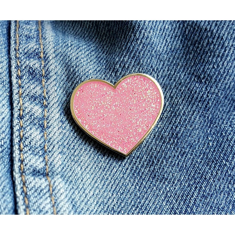 Pinsanity Pink Glitter Heart Enamel Lapel Pin