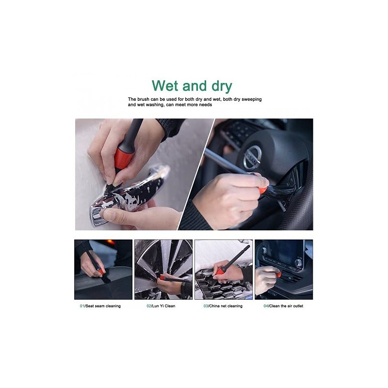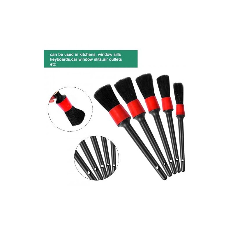 - 5 verschiedene kleine Detailierungen: Die Pinsel sind aus weichem und nicht ätzendem Schachtelhalm Haar, die Pinselgriffe sind aus hochwertigem Kunststoff. Die langlebige und weiche Bürste wird Ihre Autooberfläche nicht zerkratzen oder beschädigen. Diese 5 Bürsten in verschiedenen Längen und Breiten können Ihr Auto sowohl innen als auch außen leicht und effektiv reinigen.