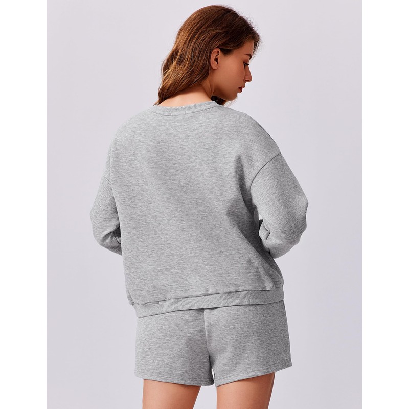 PINSPARK 2 Piece Short Sets for Women Long Sleeve Sweatshirt Matching Sets Crew Neck Sweat Suits 2024 Fall Travel, Light Grey Medium