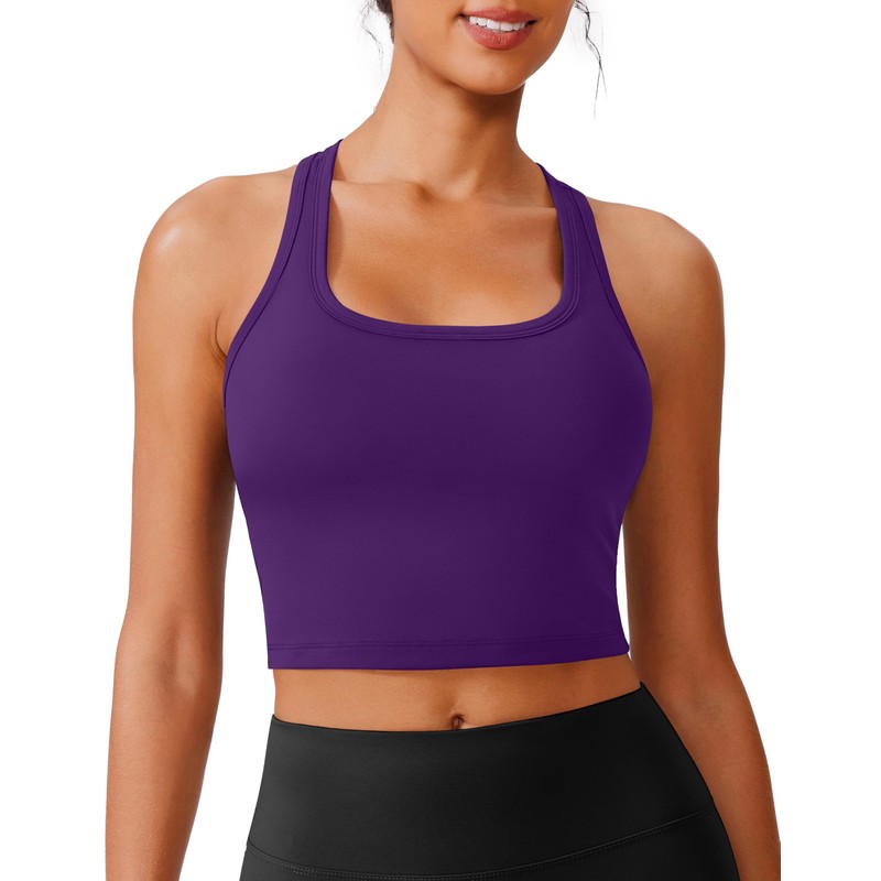 PINSPARK Sports Bras for Women Longline Yoga Bra Wide Straps Athletic Tank Tops with Built-in Bra Racerback Tennis Top Padded Exercise Bras, Dark Purple X-Small