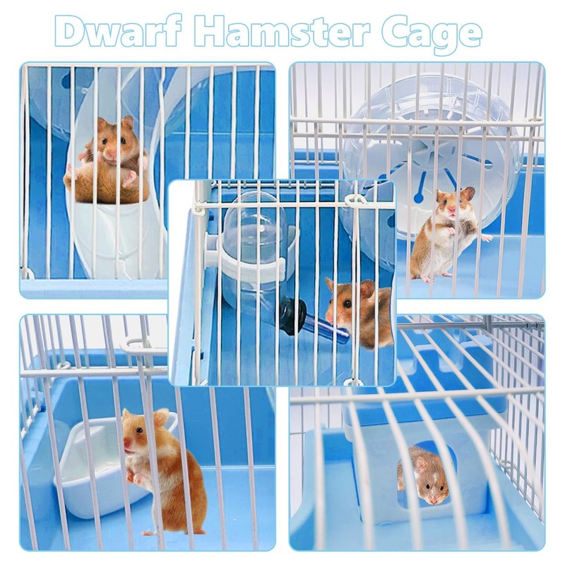 PINVNBY 2-Tier Dwarf Hamster Cage, Hamster Travel Cage Portable Mouse Cage with Running Exercise Wheels, Water Bottle and Food Dish for Hamster Mouse Rat 11.7 * 8.7 * 9.38 in (Blue