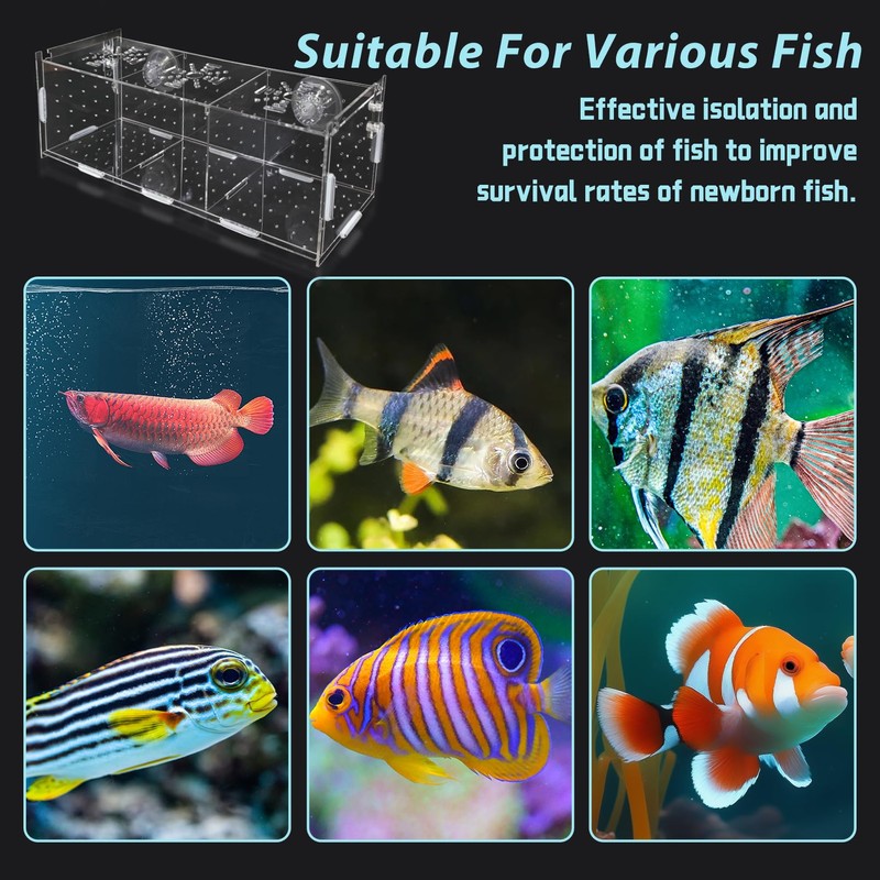 - Transparent Acrylic:Our fish breeder box for aquarium is made of transparent acrylic, so you can clearly observe the inside of the box. Removable dividers allow you to customize the size and number of chambers according to your requirements