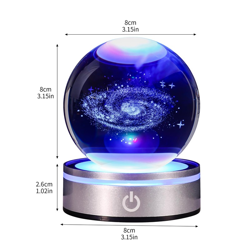 - Unique design: 3D Galaxy is laser engraved on an 80mm diameter 3.15" K9 crystal ball, with a clear and three-dimensional view of the Galaxy floating.