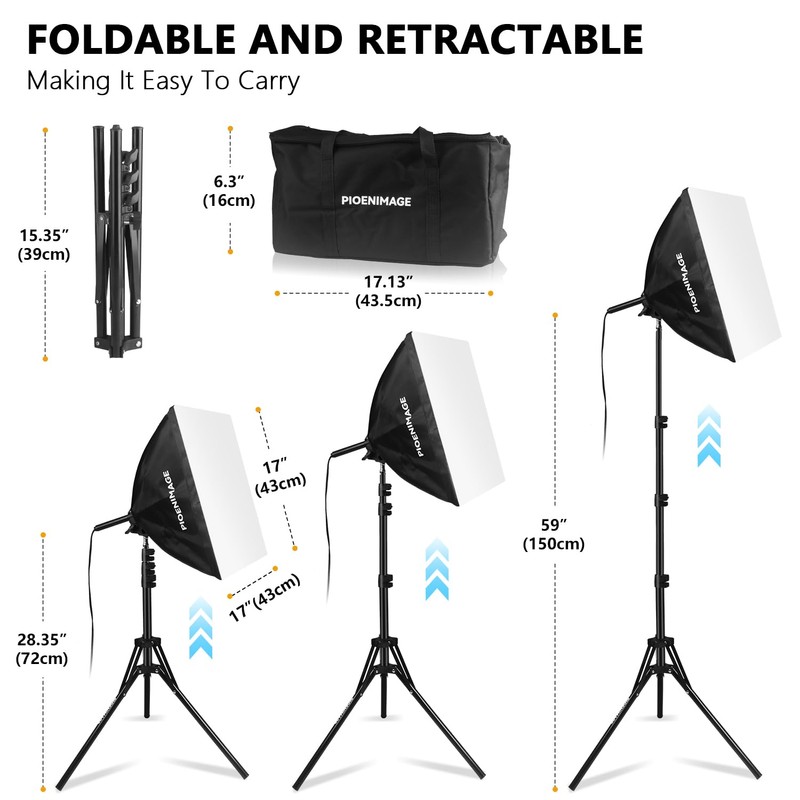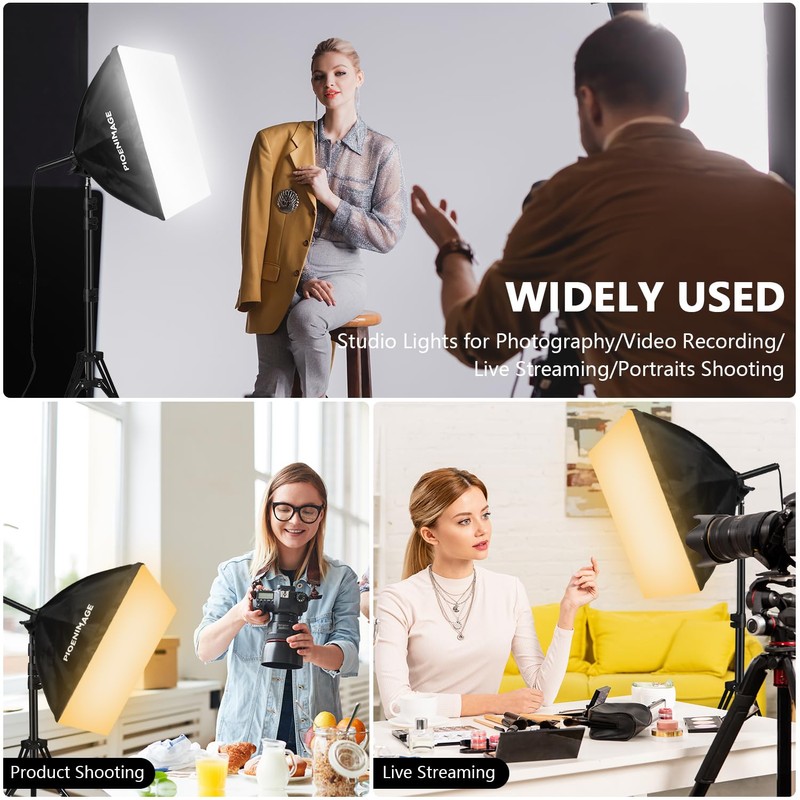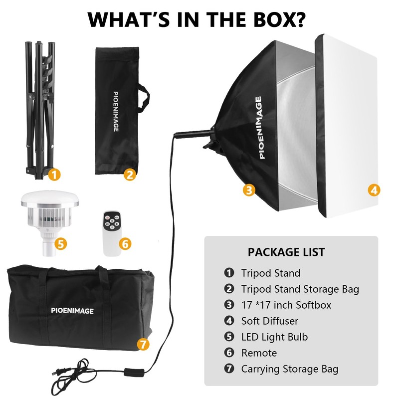 PIOENIMAGE Softbox Photography Lighting Kit, Soft Box Lighting Set with 17in x 17in Softbox, Folding Lighting Tripod, 85W 2700K-6500K LED Bulb, Remote, Studio Lights for Photography, Video Recording