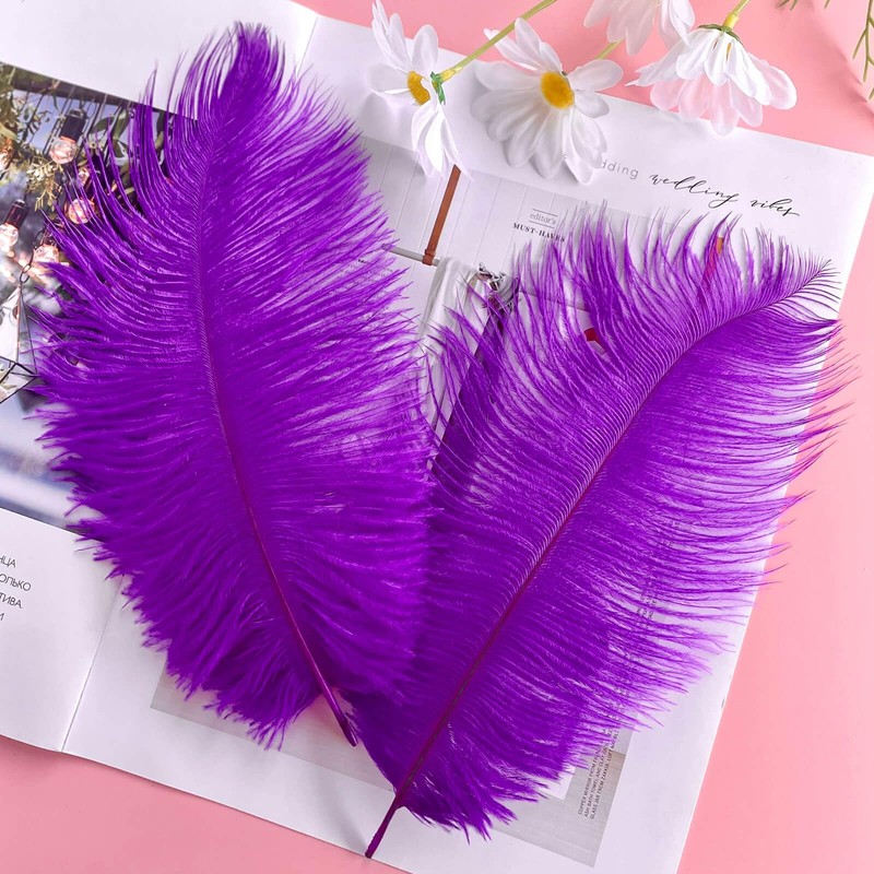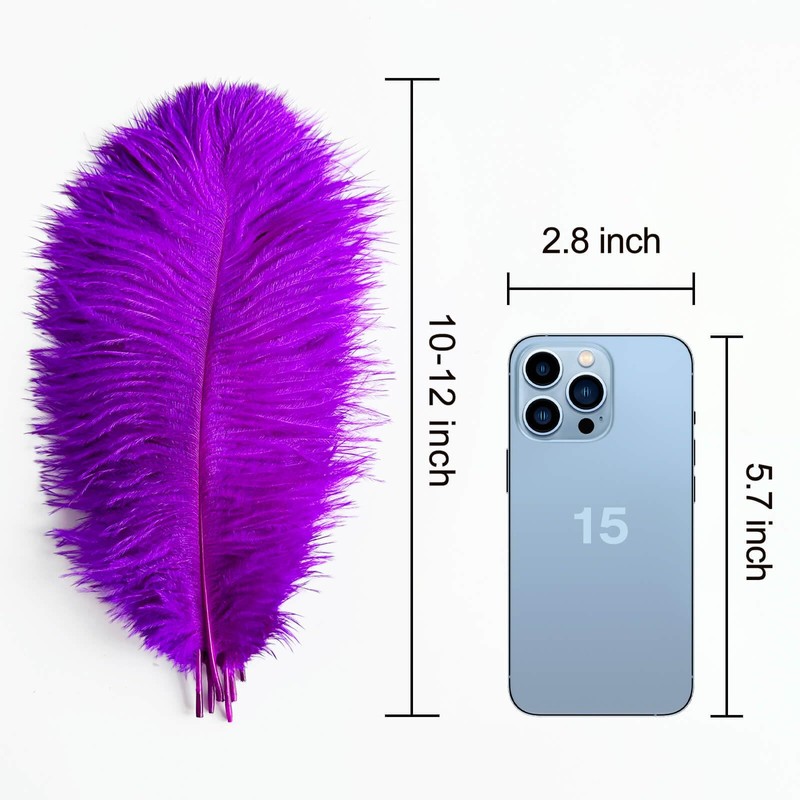 Piokio 10pcs Purple Ostrich Feathers 10-12 inch (25-30cm) Bulk Feathers for Decoration and DIY Clothing and DIY Clothes Decoration, Gatsby Decorations