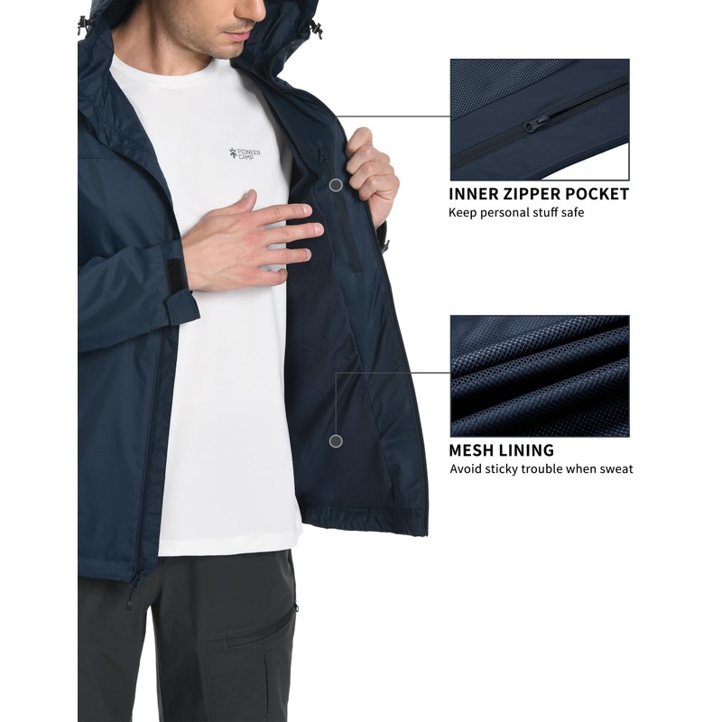Pioneer Camp Men's Rain Jacket Waterproof with Hood Lightweight Packable Raincoat Rain Shell for Outdoor Hiking Travel
