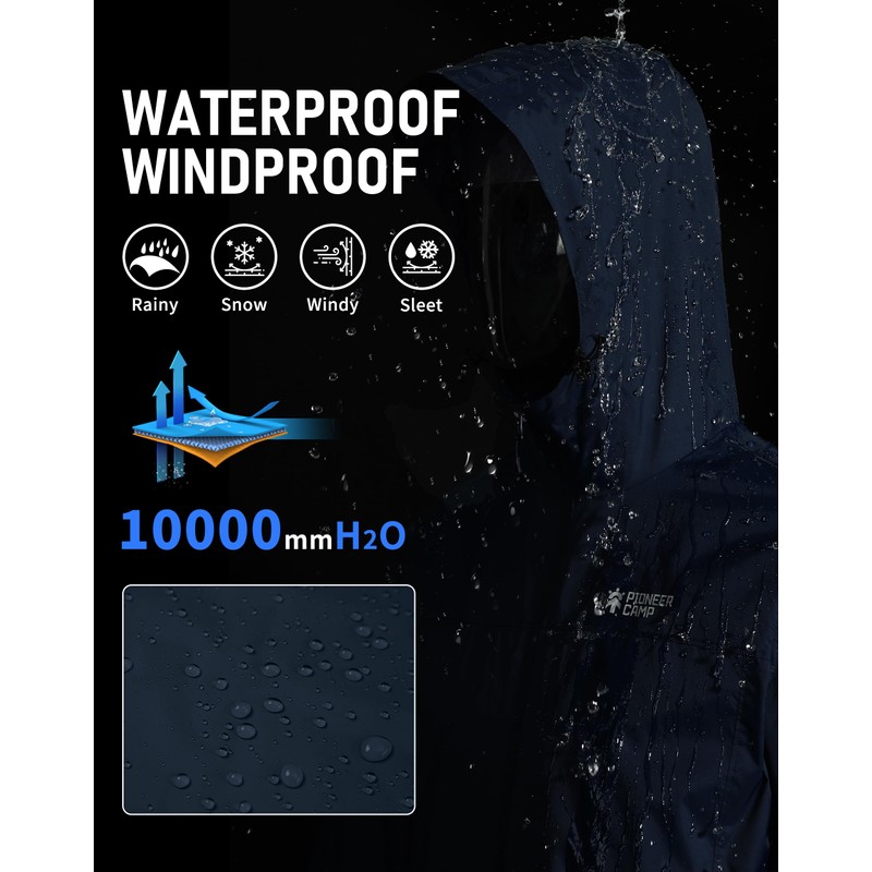 - WATERPROOF & WINDPROOF: The men's rain jacket with waterproof shell provides excellent waterproof protection and performed well in windproof. 10000mm waterproof , effectively fights bad rainy or misty weather and keeps you all day dry.