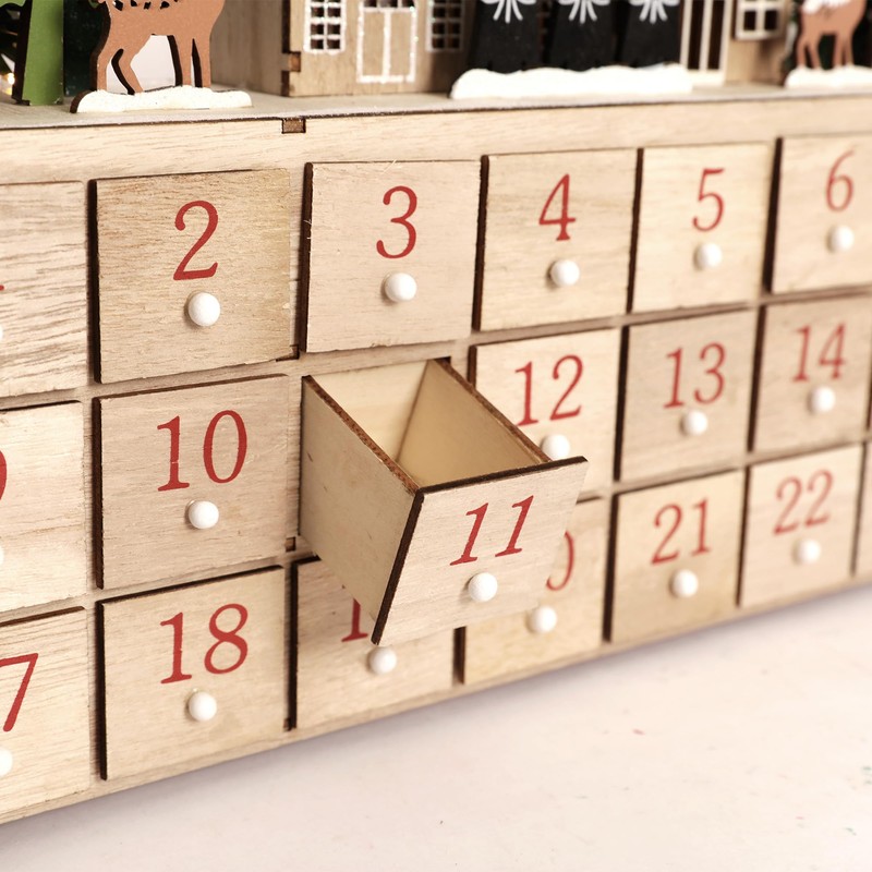- 3. Premium Quality Holiday Decoration: Crafted from high-quality wood, this Christmas advent calendar is durable and built to last for many holiday seasons. The detailed craftsmanship ensures it stands out as a beautiful wooden holiday decor piece that you can use year after year.