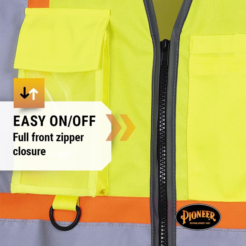 • HI VIS SAFETY VEST - Pioneer Hi Vis Multi Pocket Zip-Up Safety Vest for Men & Women is ideal for road work, construction, traffic control, industrial settings