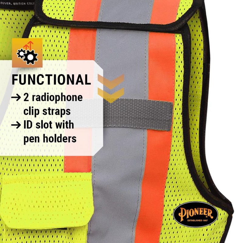 - TEAR-AWAY SAFETY VEST FOR WOMEN - Pioneer High Visibility 5 Point Tear Away Safety vest is for women and designed with a tapered waist and flared bottom and zip-up vest for easy on/off