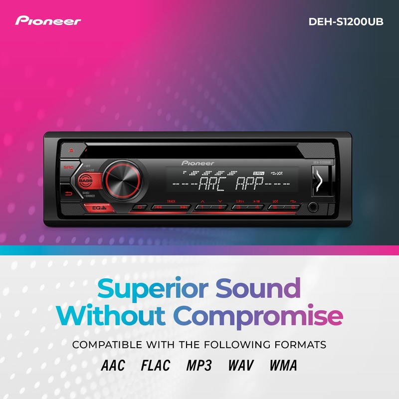 Pioneer DEH-S1200UB 1-Din CD Receiver – USB, AUX, FLAC Playback, AM/FM Radio, 50W x 4 Output, MIXTRAX, Detachable Face, Preset EQ, Bass Boost, Remote Control Included