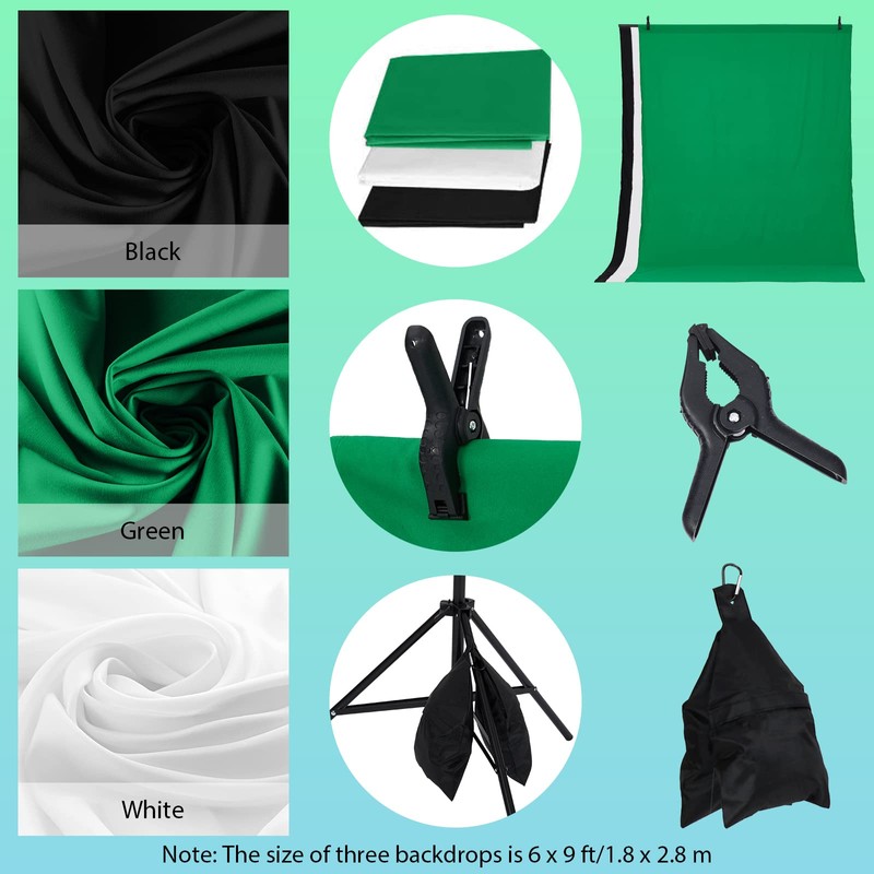 PioneerWorks Photography Lighting kit with Backdrops, 8.5ftx10ft Backdrop Stand, 5 tripod stands and Bulb, Umbrella Softbox Continuous Lighting, Photo Studio Equipment for Portrait Product Photo Shoot