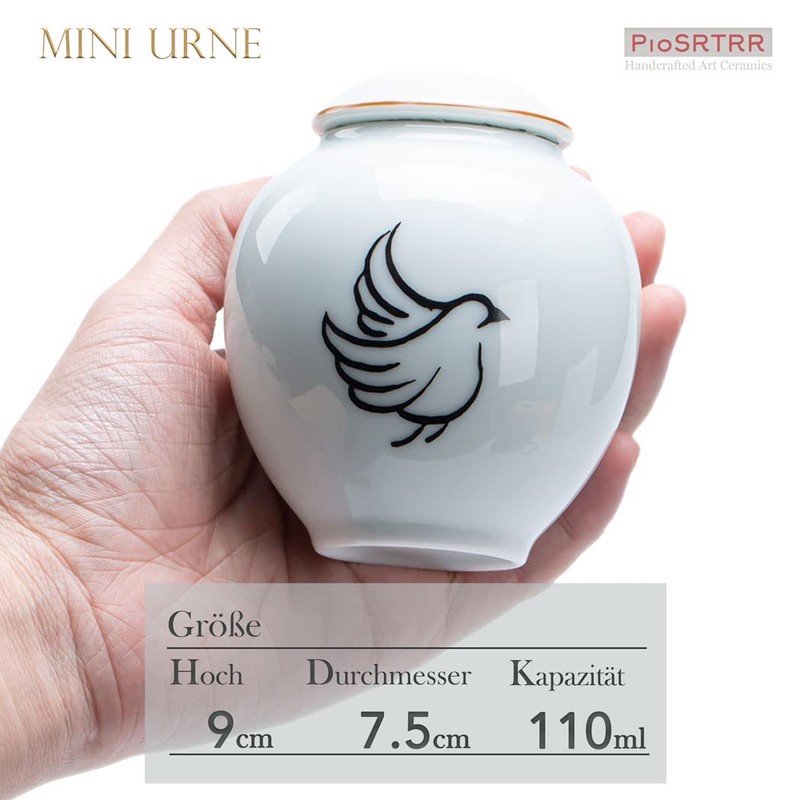 - The set contains four ceramic urns, the small urn with a capacity of 110 ml, 9 cm high and 7.5 cm in diameter
