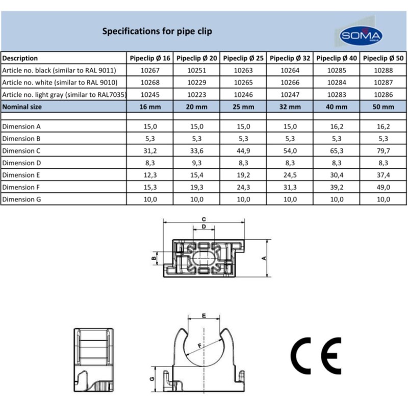 - Easy to use: intelligent and simple construction of the clip-on pipe clips saves your time and installation costs. The Soma pipe clips can be quickly and easily attached in a row