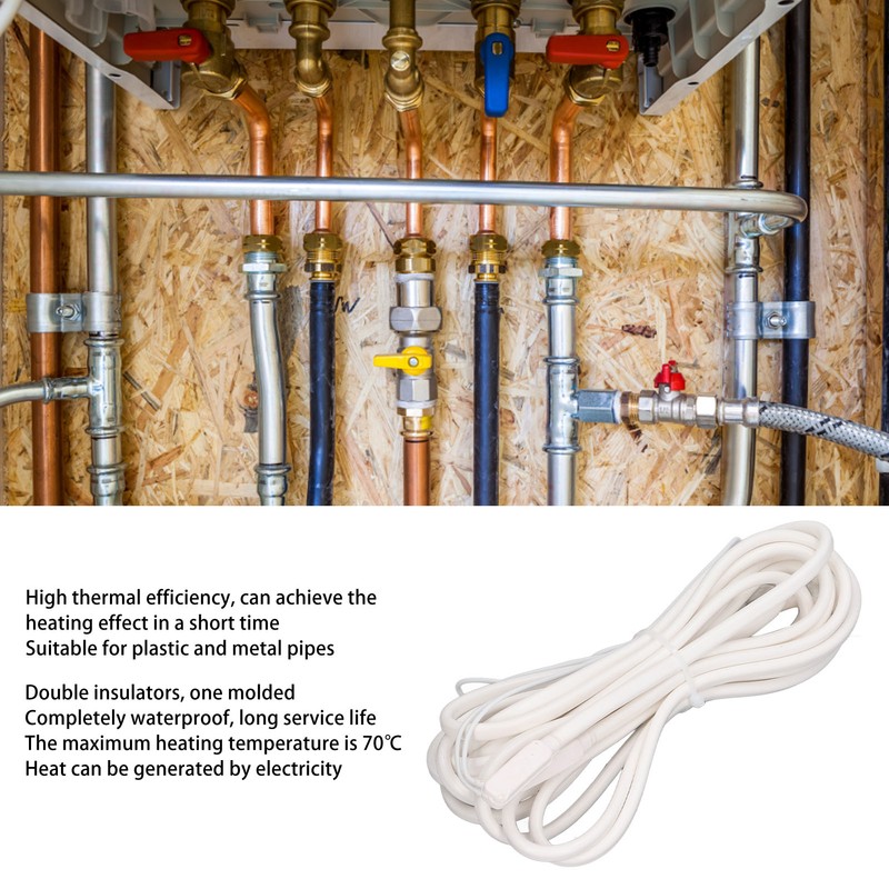 1、Freeze Protection: This heating cable can keep water flowing without freezing at ambient temperatures as low as ‑40℃ and place pipes to blow. 2、Safe to Use: The maximum heating temperature of the cable is 70℃, which will not damage the pipe, and cable is also completely waterproof and has double insulator to ensure the safety of use. 3、Fast Heating: Electricity can produce heat, direct heat conduction, high thermal efficiency can be heated in a short time to achieve results. 4、Wide Application: The heating cables for plastic and metal piping to ensure commercial and residential plastic or metal water supply piping. 5、Simple Operation: The heating cable is molded in one piece, long service life, easy to operate, then install cable and use.