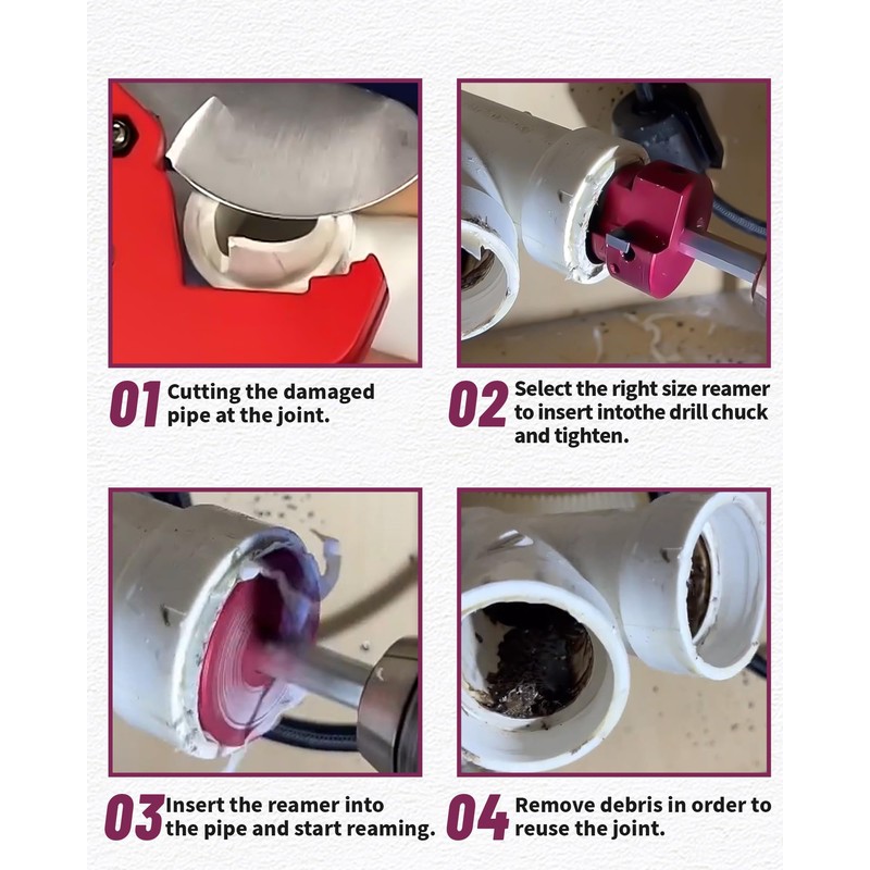 - 【Efficient Design】: Our PVC Reamer features a square carbide insert with four cutting surfaces. You can rotate it 90 degrees for a new sharp cutting surface. This design maximizes cutting efficiency, helping you quickly extract old pipes with minimal effort.