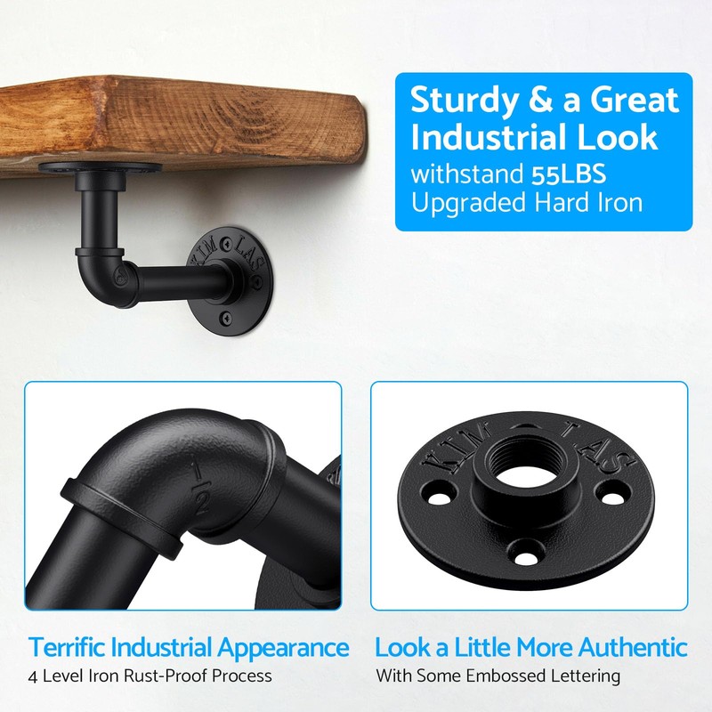 - *๐๐ฎ๐ฌ๐ญ-๐๐ซ๐จ๐จ๐ ๐๐ง๐๐ฎ๐ซ๐๐ง๐๐*----: Carefully Crafted and Coated in a Sleek Black Finish, eSynic's Pipe Shelving Brackets Are Not Only Visually Captivating but Also Designed for Long-Lasting Durability Against Rust, Reflecting eSynic's Dedication to Quality.