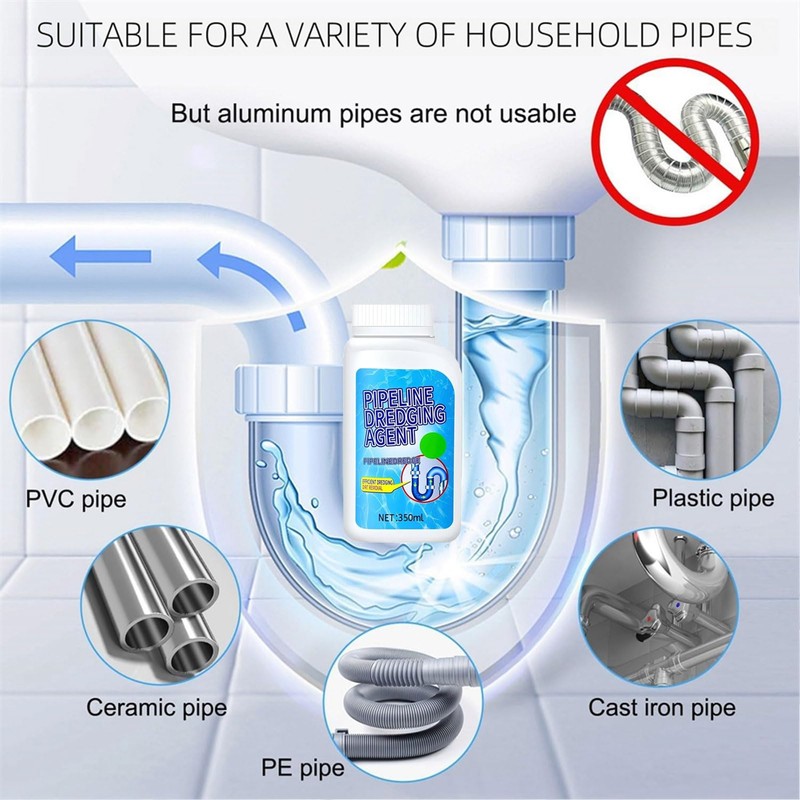 - 【Multiple Uses】: The versatile Pipeline Dredging Agent is perfect for handling clogs in kitchens, bathrooms, and toilets. It's ideal for cleaning sinks, bathtubs, showers, kitchen water pipes, floor drains, and more, making it an essential tool for maintaining a clog-free plumbing system.