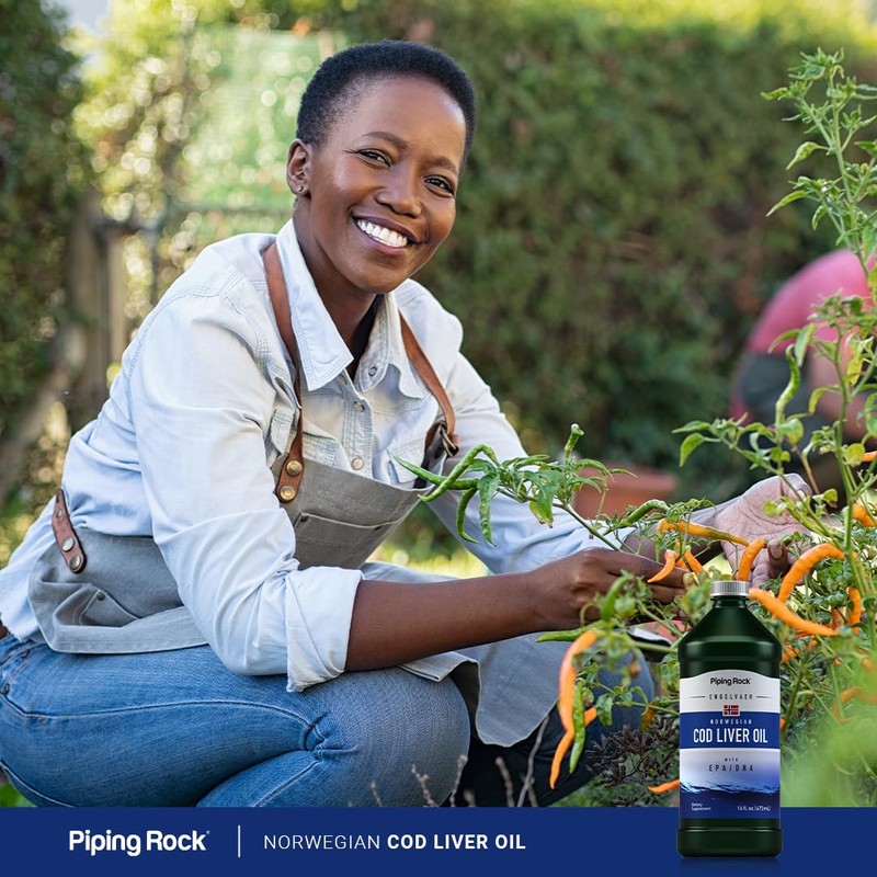 Piping Rock Cod Liver Oil Liquid | 16 fl oz | with EPA DHA | Engelvaer Norwegian | Non-GMO, Gluten Free Supplement