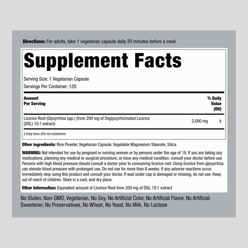 Piping Rock DGL Supplement | 2000mg | 120 Capsules | Licorice Root | Mega Potency | Herbal Extract | Vegetarian, Non GMO, Gluten Free