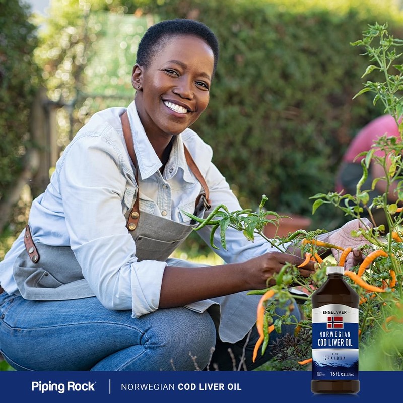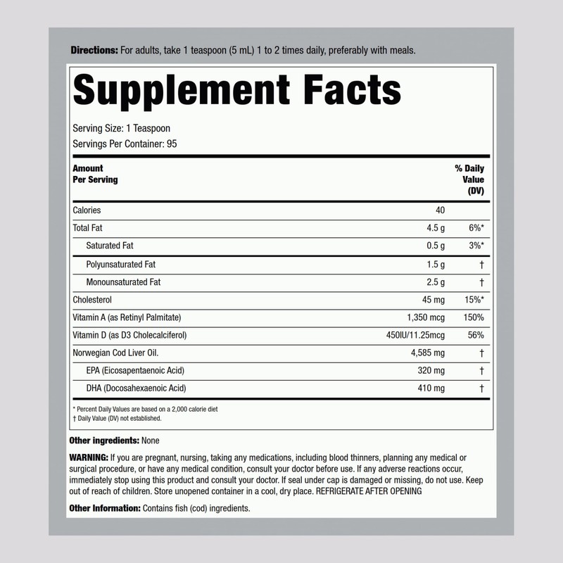 Piping Rock Piping Rock Cod Liver Oil Liquid | 16 fl oz | with EPA DHA | Engelvaer Norwegian | Non-GMO, Gluten Free Supplement