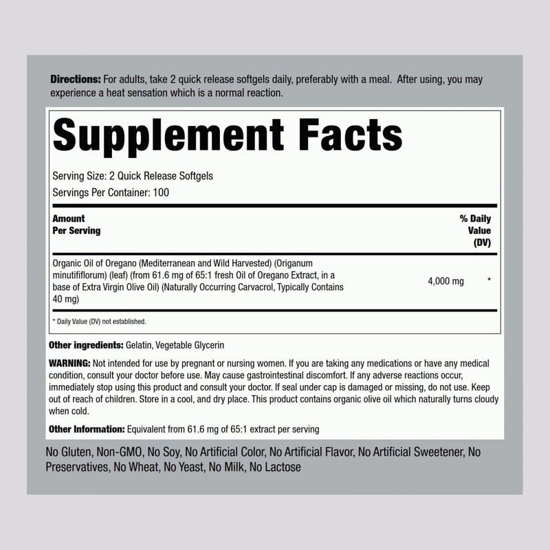 Piping Rock Oregano Oil Capsules 4000mg | 200 Pills | Herbal Extract Supplement | Wild Harvested | Non-GMO, Gluten Free