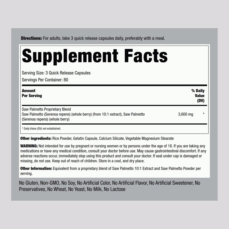 Piping Rock Piping Rock Saw Palmetto Extract 3600mg | 240 Capsules | for Men and Women | Non-GMO, Gluten Free Supplement