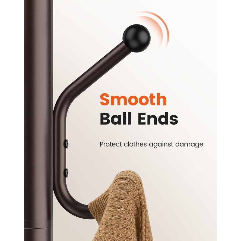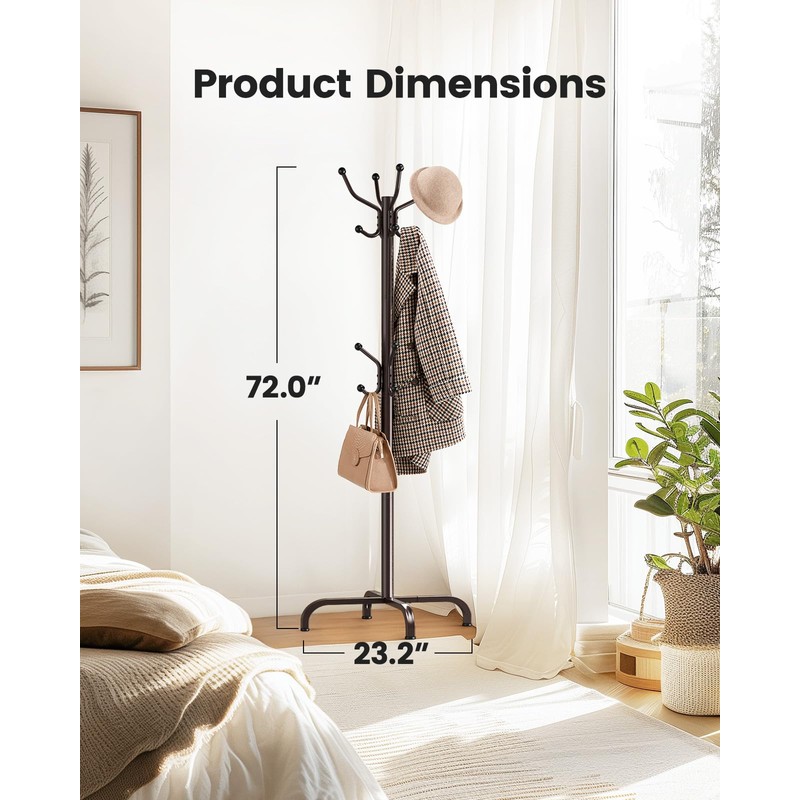 Pipishell Coat Rack with 14 Hooks, Freestanding Coat Rack Stand for Entryway, Hallway, Bedroom, and Office, Metal Coat Tree & Hat Rack for Coats, Hats, and Bags, Brown