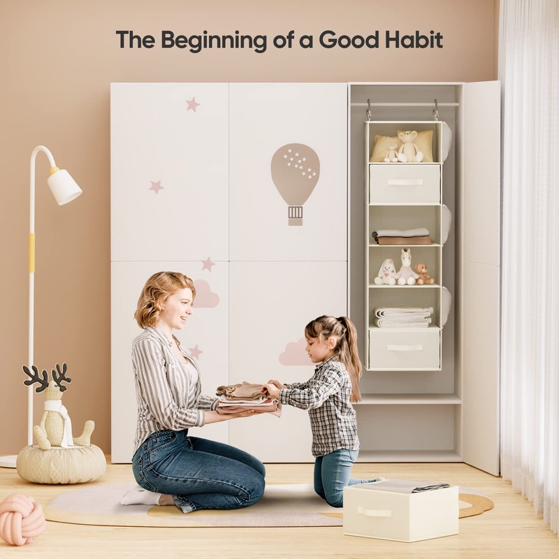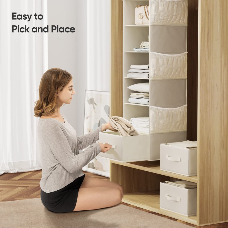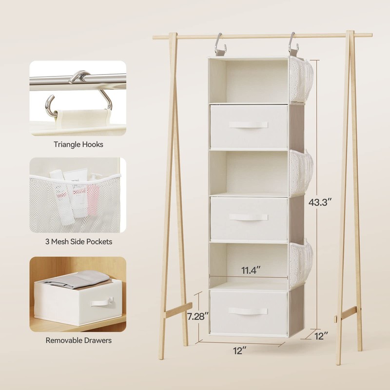 - PRACTICAL CLOSET ORGANIZER: The Pipishell hanging closet organizer with drawers uses the vertical space in your closet to maximize capacity. The contemporary fabric and stylish color fits in well with any design style and aesthetic.