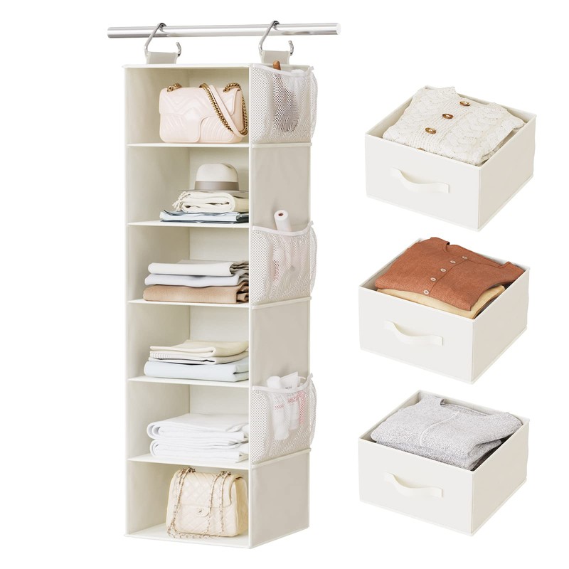 The hanging closet shelves with 3 divisible drawers provide you with extra larger space to store more items like clothes and child toys. You can stuff into the box to store private underwear, or take out and put in the closet used as a normal drawer.