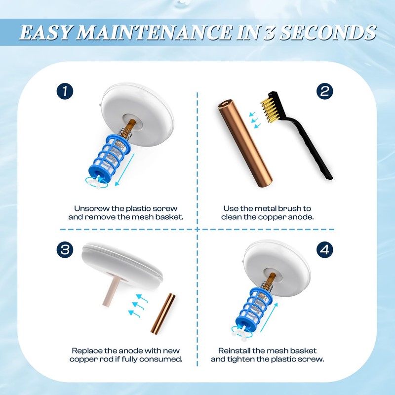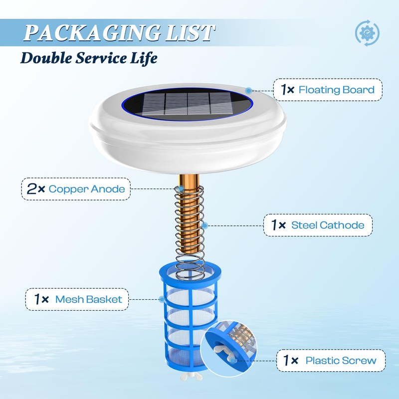 Pipopa Solar Pool Cleaner | Floating Water Cleaner and Purifier | 2 Copper Replacement | Solar Powered Up to 35,000 Gal | Compatible with Fresh and Salt Water Pools & Spas