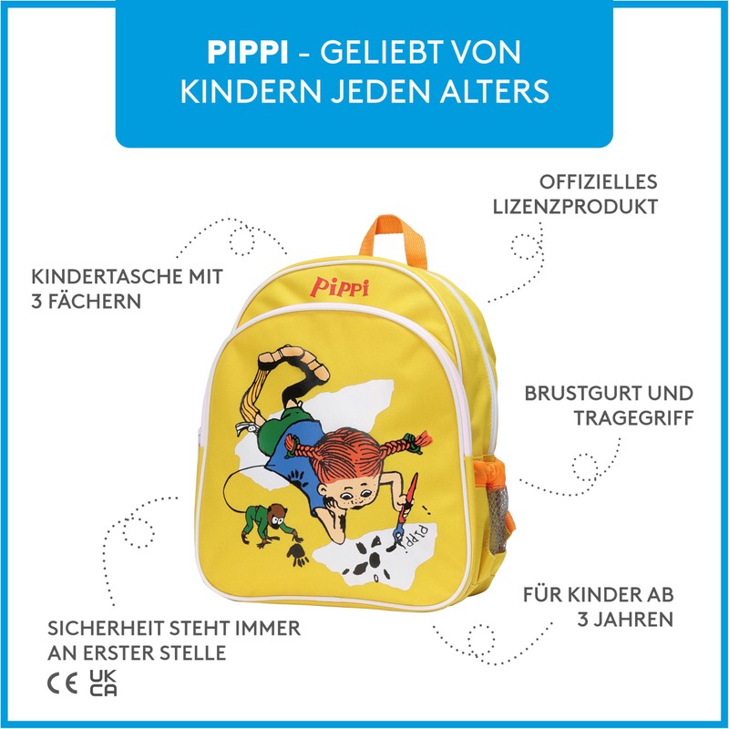 - The perfect travel bag. This colourful backpack is the favourite part of any Pippi fan! This is a yellow Pippi backpack, perfect for any adventure! This beautiful quality backpack is ideal for smaller children and for any occasion - picnic in kindergarten, clothes for children's gymnastics, staying overnight with grandparents or just playing in the garden.