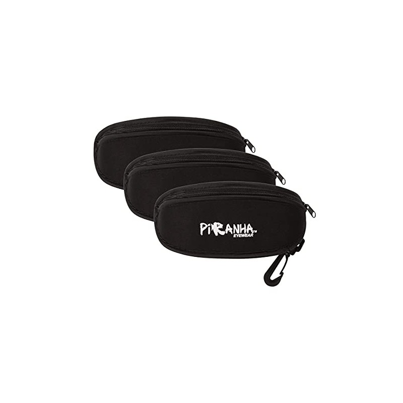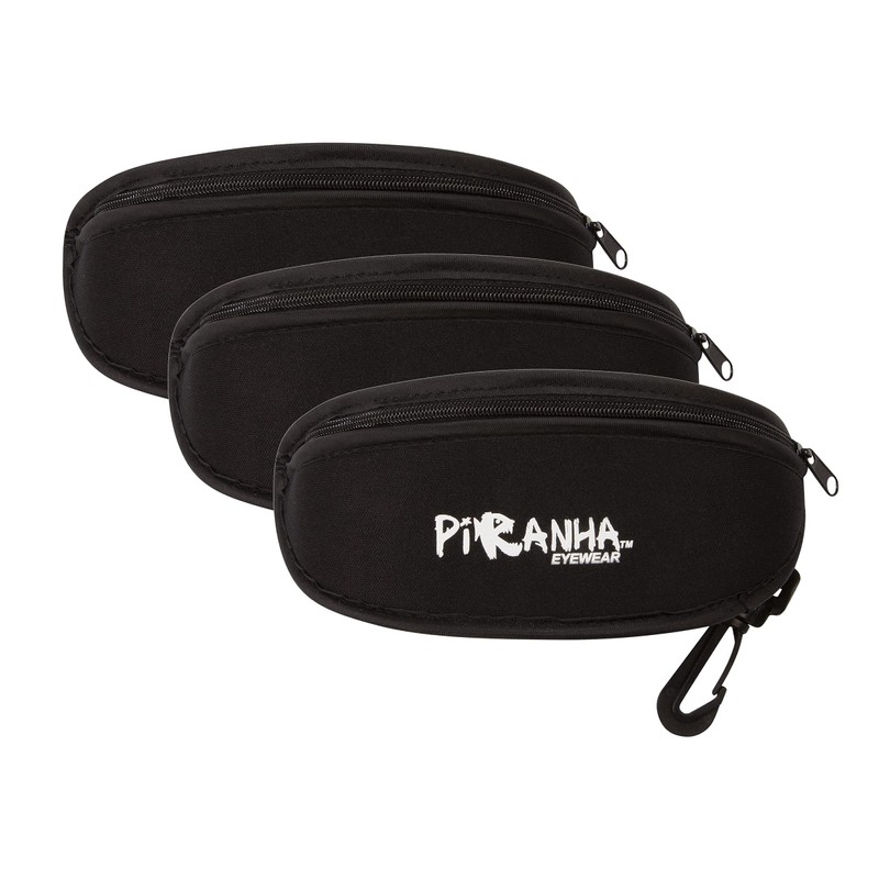 Piranha Black Zipper Eyewear and Sunglasses Case with Clip (Set of 3)