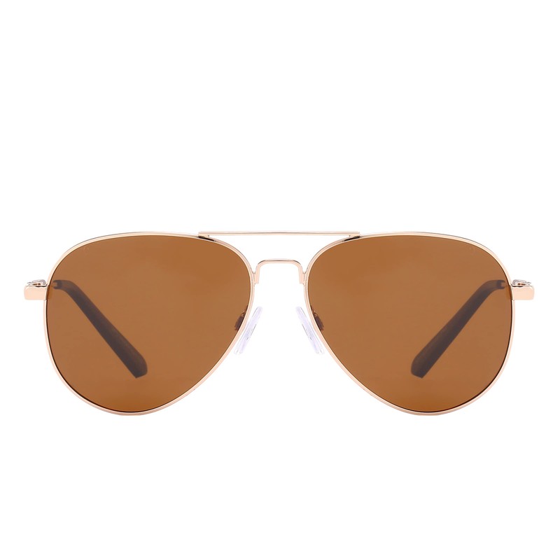 - Polarized aviators with a twist! With brown polarized lenses and a gold double-bar bridge, these aviator sunglasses are a great addition to your collection and perfect for a road trip.