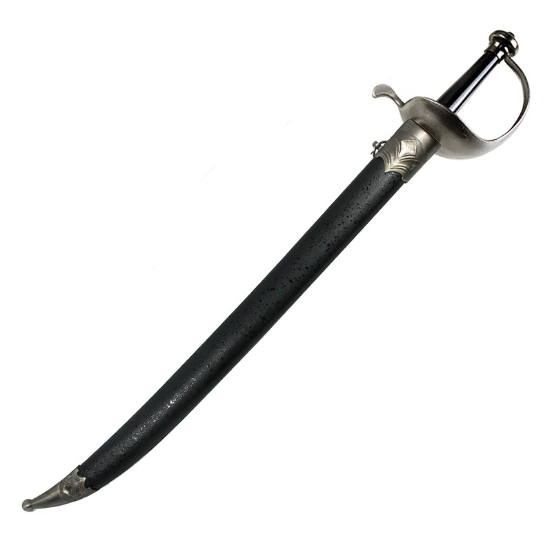 • Handle: The handle is wood with a black finish. The pommel of the sword is an ornate capstan rivet.
