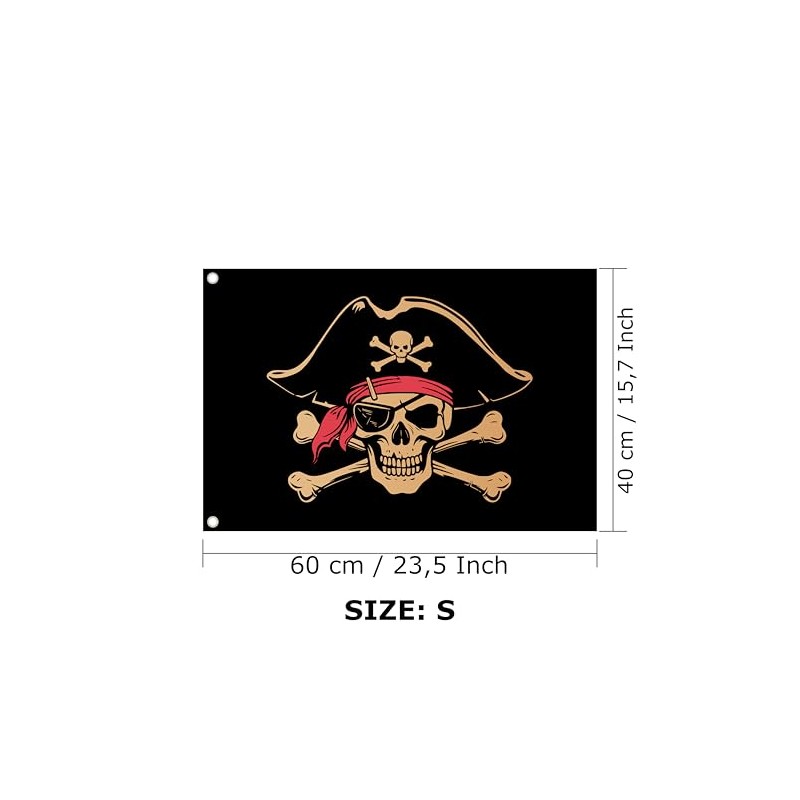 Pirate Flag / 60 x 40 cm / 23.6 x 15.7 Inches / Weatherproof with Eyelets / Outdoor and Indoor / Flag for Flagpole /100% Polyester (Skull 1 (Size S))