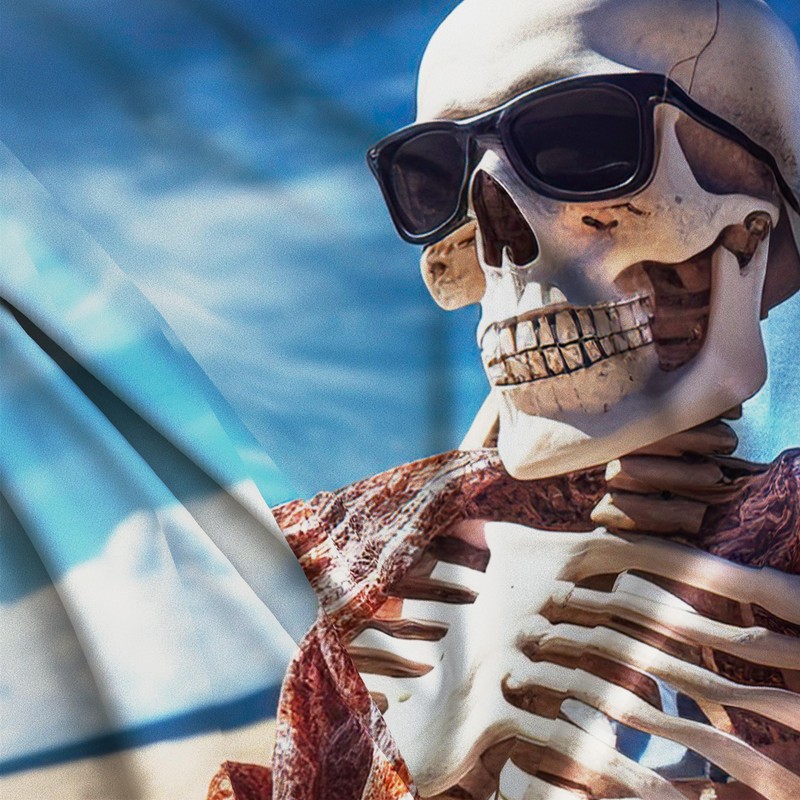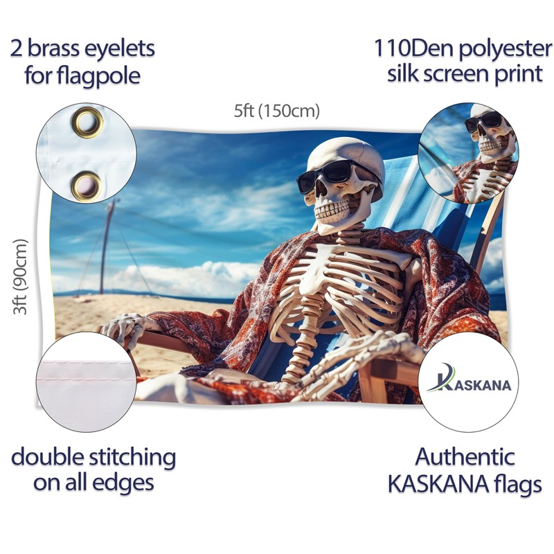 Pirate Flag - Jolly Roger Flag with Skeleton on the Beach - Double-sided Print - 110Den Polyester - Double Seam - 2 Brass Eyelets, Large 5ft x 3ft