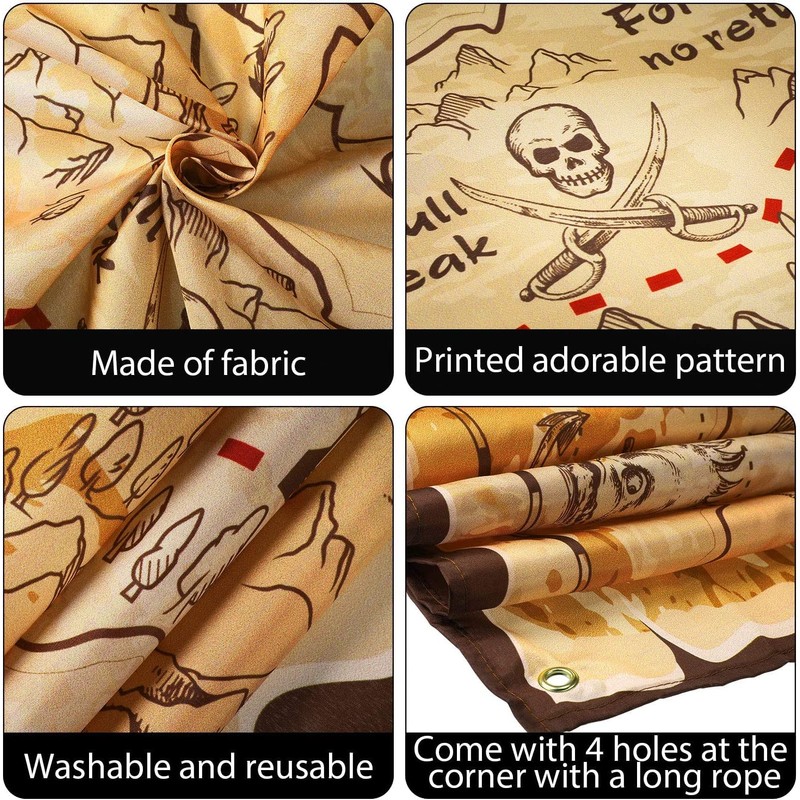Material: the treasure map is made polyester fabric, durable, not easy to tear; Also can roll up for the next time use. Huge Size: 95x 75 cm/ 37X29 inch; Print one side.