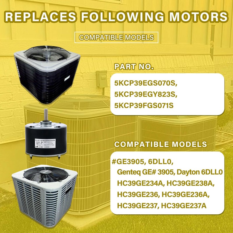 - 【Compatible Models】 Motor compatible models 5KCP39EGS070S, 5KCP39EGY823S, ge 3905, carrier HC39GE237, HC39GE237A, dayton 6DLL0. Can be used as a direct replacement