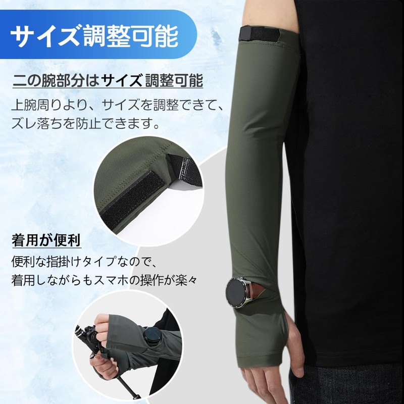 - Sunscreen Protection by UV Protection: Parasol and sunscreen are a standard way to protect your skin from UV rays, but you can also use it with an arm cover to protect your arms. The UPF 50+ fabric allows you to stay safe even in the sun. Even when you are out or driving a car, you can easily wear it when you feel heat or UV rays, etc