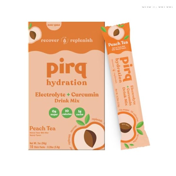 • Pirq Electrolyte + Curcumin Hydration Drink Mix, Peach, Vegan Friendly, Kosher, Gluten Free & Non-GMO, 10 Stick Packs (Pack of 1)