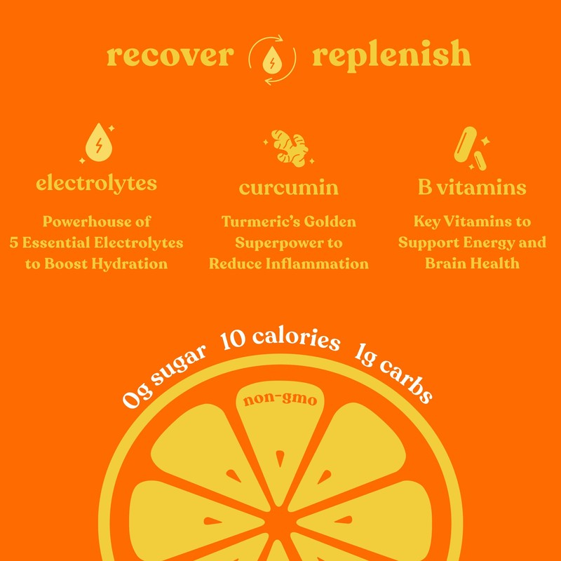 Pirq Hydration - Orange - Hydration Powder Packets | Electrolyte Drink Mix | Curcumin | B Vitamins | Zero Sugar | Keto Friendly | 10 Sticks